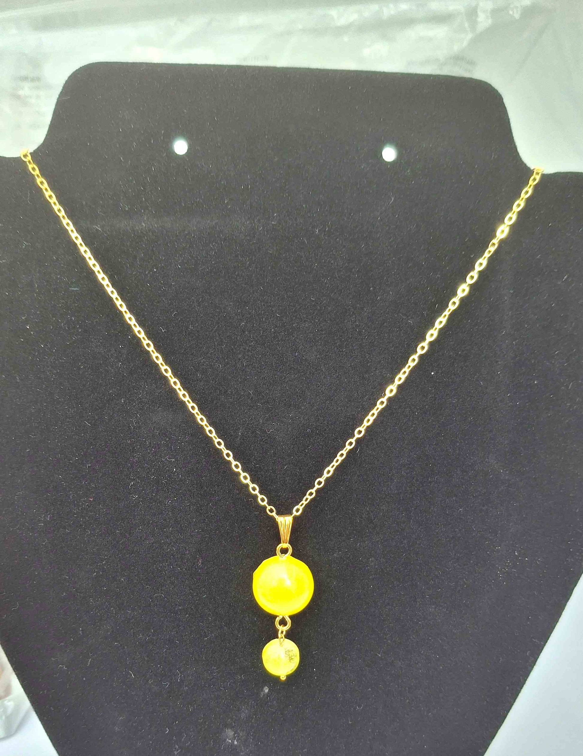 Pendant: Two resin beads in golden yellow