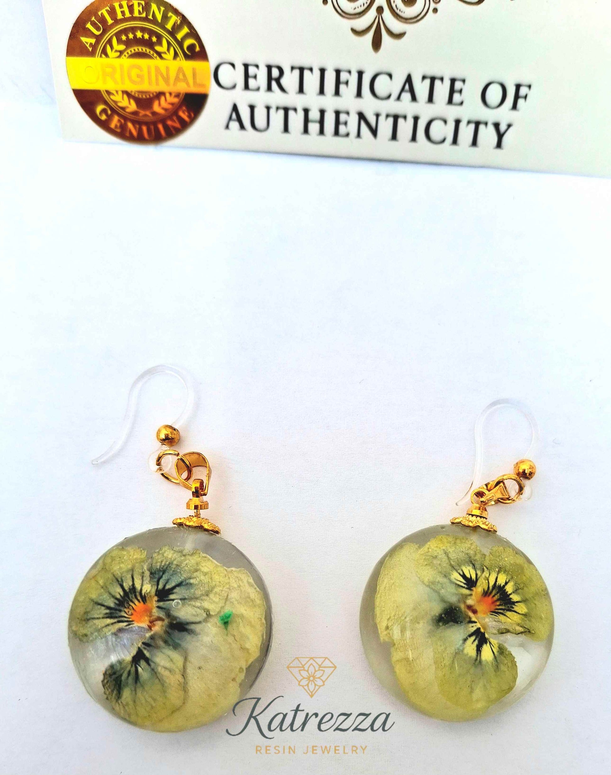 Handmade Resin Earrings with Real Pansy Flowers – 5 cm Drop | Katrezza