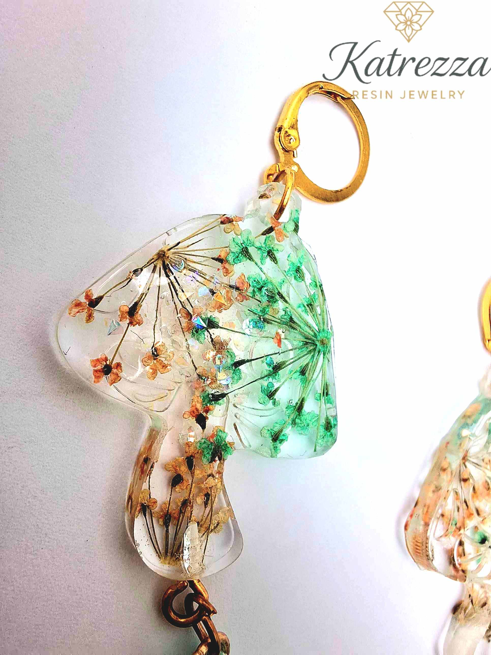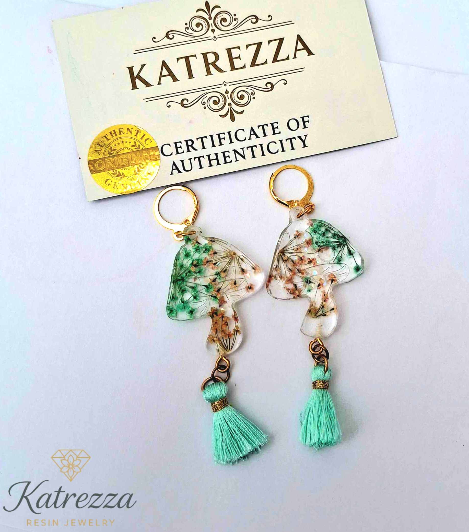 Handmade Resin Mushroom Earrings with Real Flowers & Tassel – Katrezza